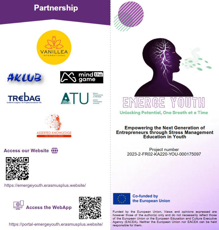 Empowering the Next Generation of Entrepreneurs through Stress Management Education (EMERGE) is an Erasmus+ project focused on equipping young people across Europe with specialized stress management techniques. The initiative primarily targets: